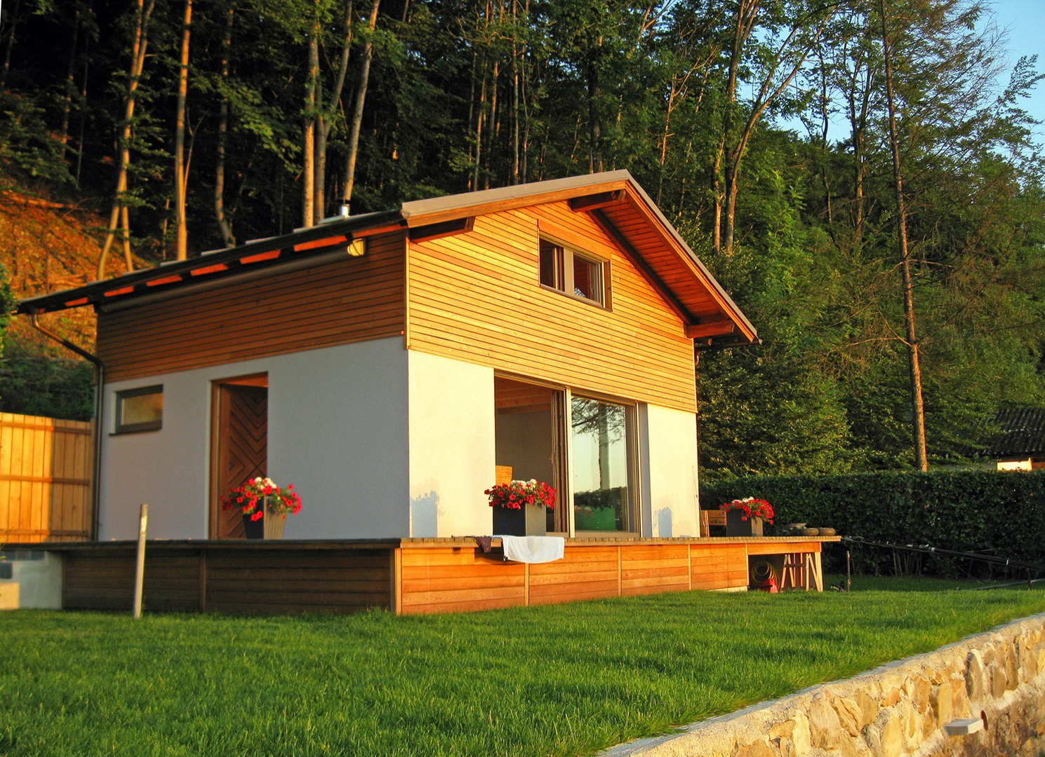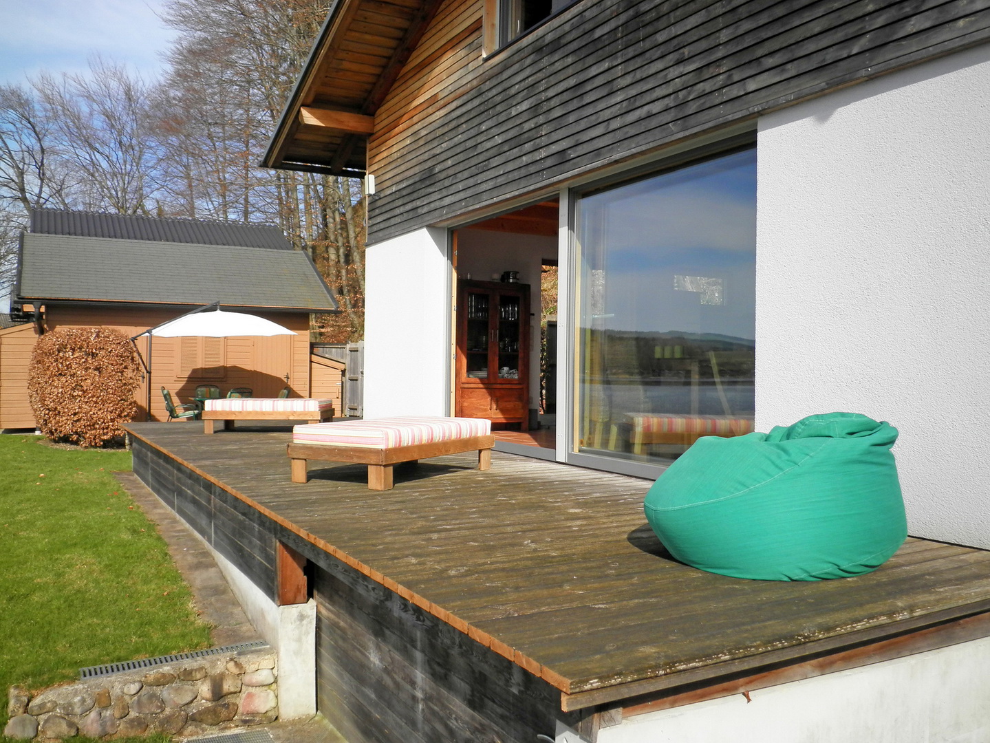 ca. 30m² Holzterrasse mit Bodenspots beim Haupthaus;