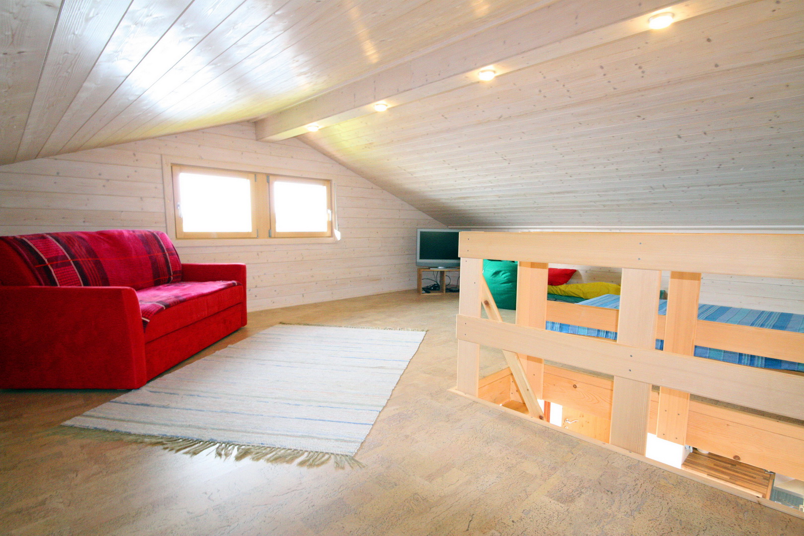 ca. 12,50m² Wfl. - 1 Zimmer mit Stockbett + Bad mit Dusche und WC sowie Gerätebox und Spitzboden