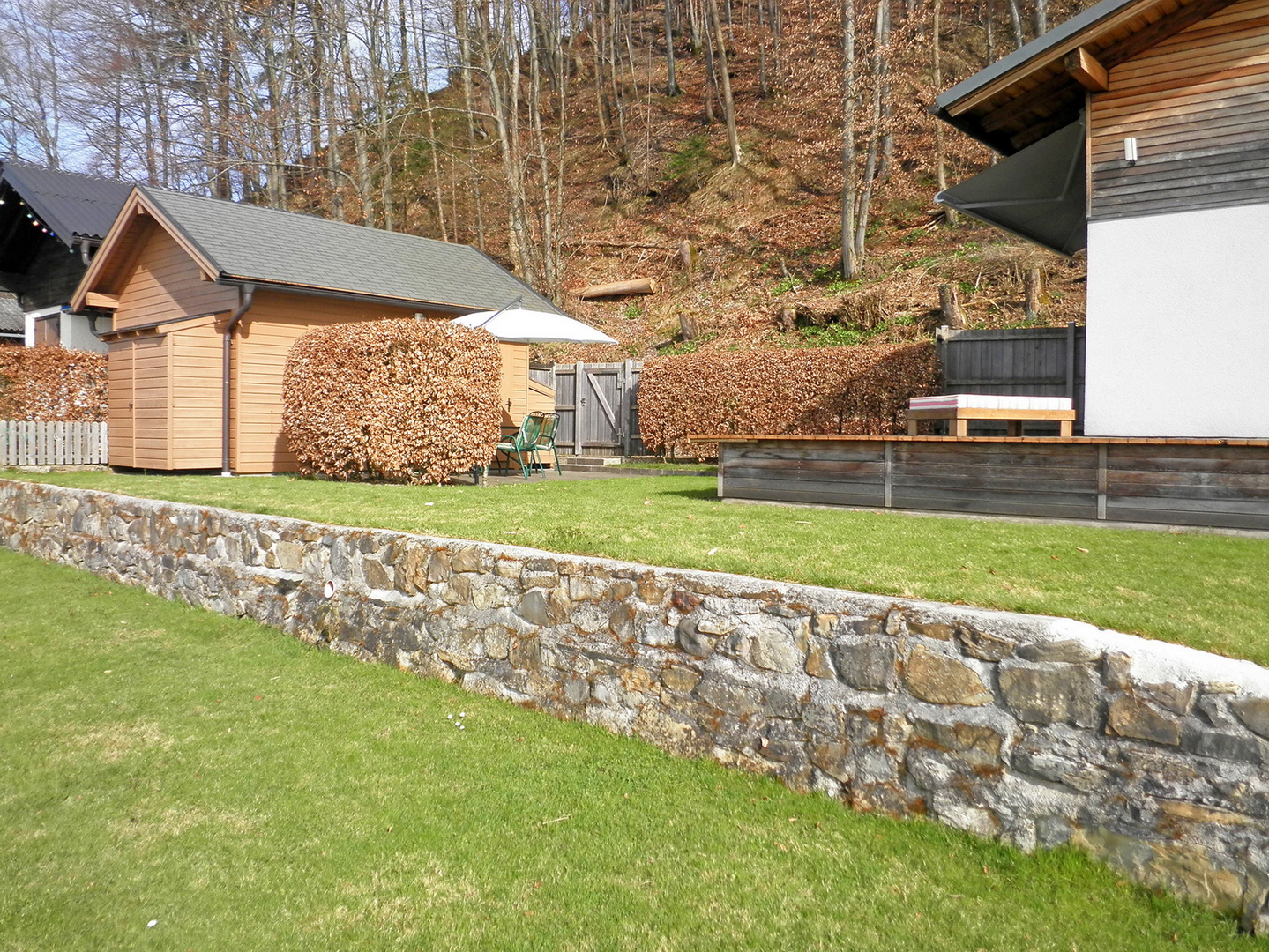 terrassierte Rasenflächen mit Stützmauer;