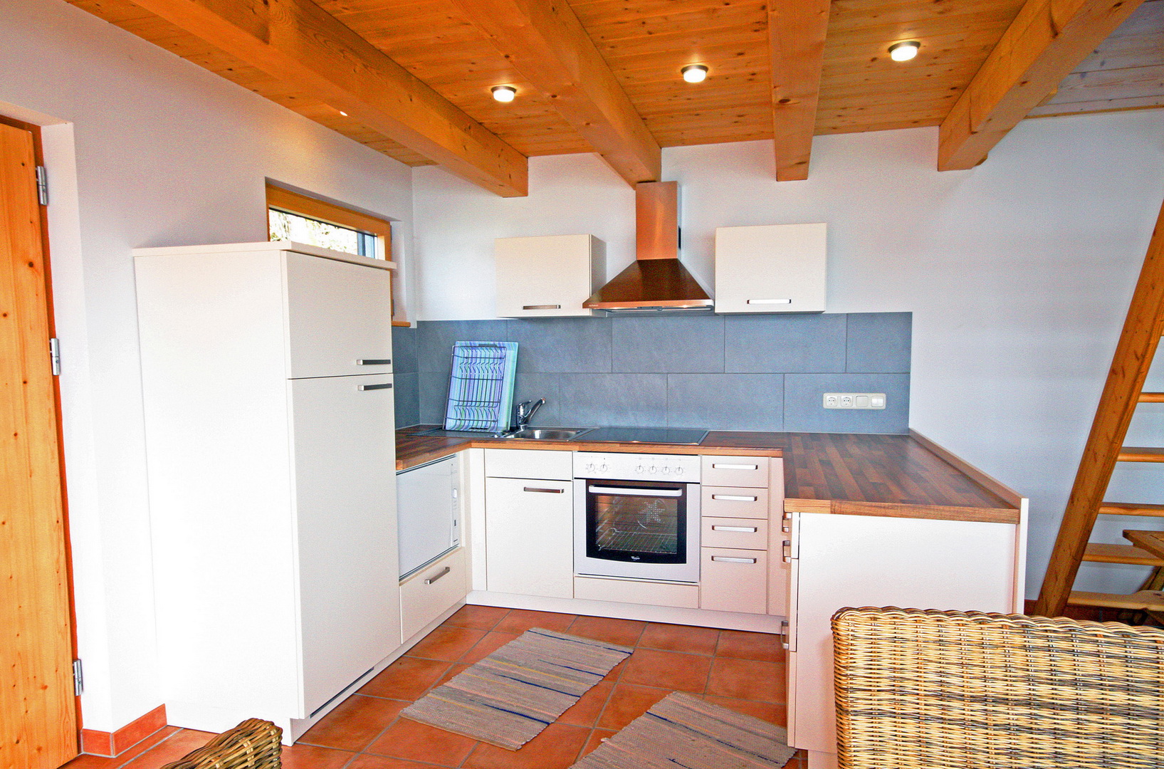 Ceranfeld, Dunstabzug, Geschirrspüler, Kühl- Gefrierkombination) und Spüle; großzügiger